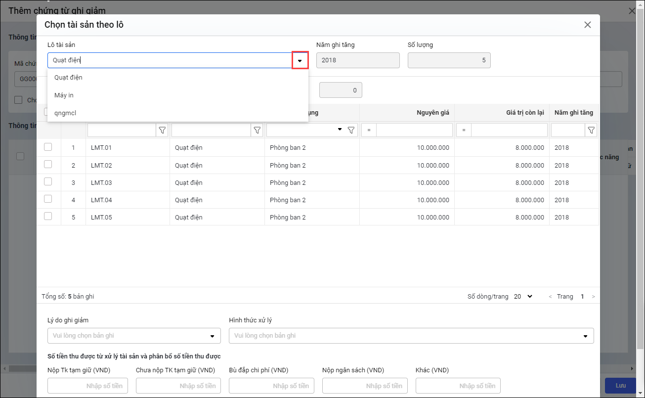 Bài viết này giúp anh/chị lập và quản lý các chứng từ ghi giảm tài sản tại đơn vị (Khi tài sản bị điều chuyển, thanh lý, chuyển nhượng,…), bao gồm trường hợp tài sản được quản lý theo mô hình tài sản cha – tài sản con (tài sản theo lô) và tài sản thông thường.