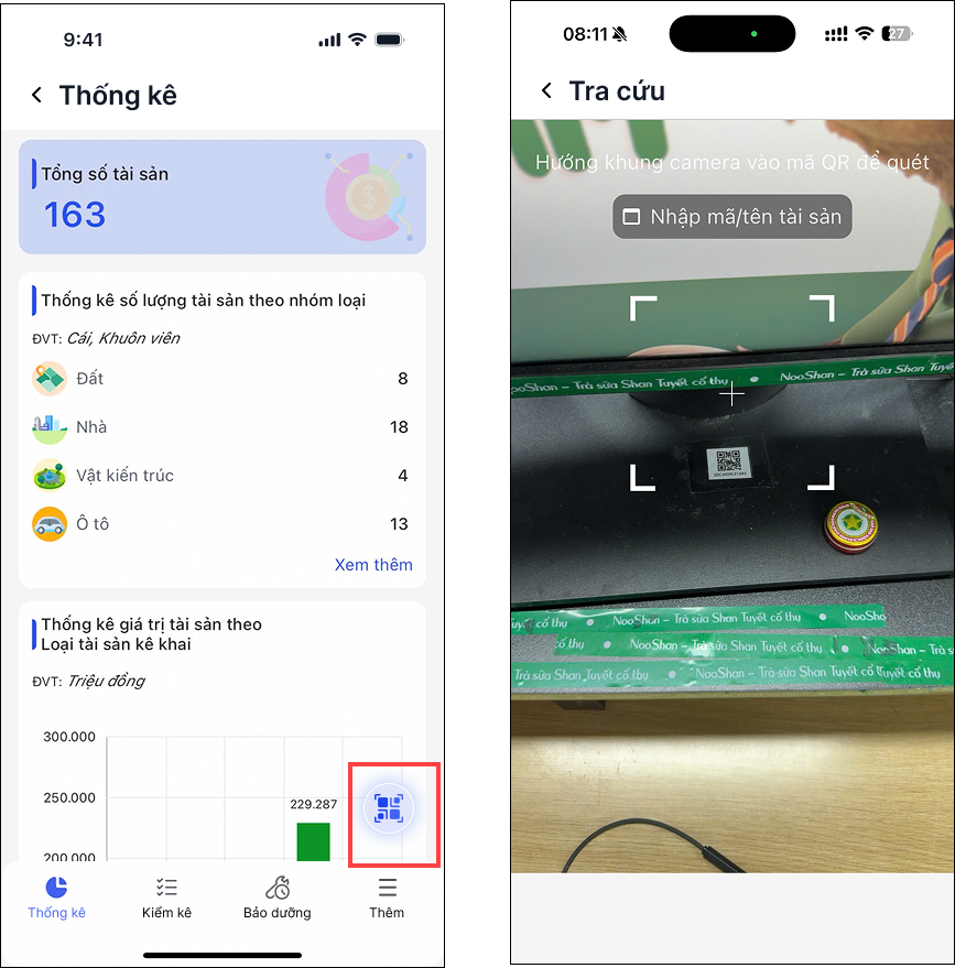 - Tra cứu thông tin tài sản và lịch sử biến động