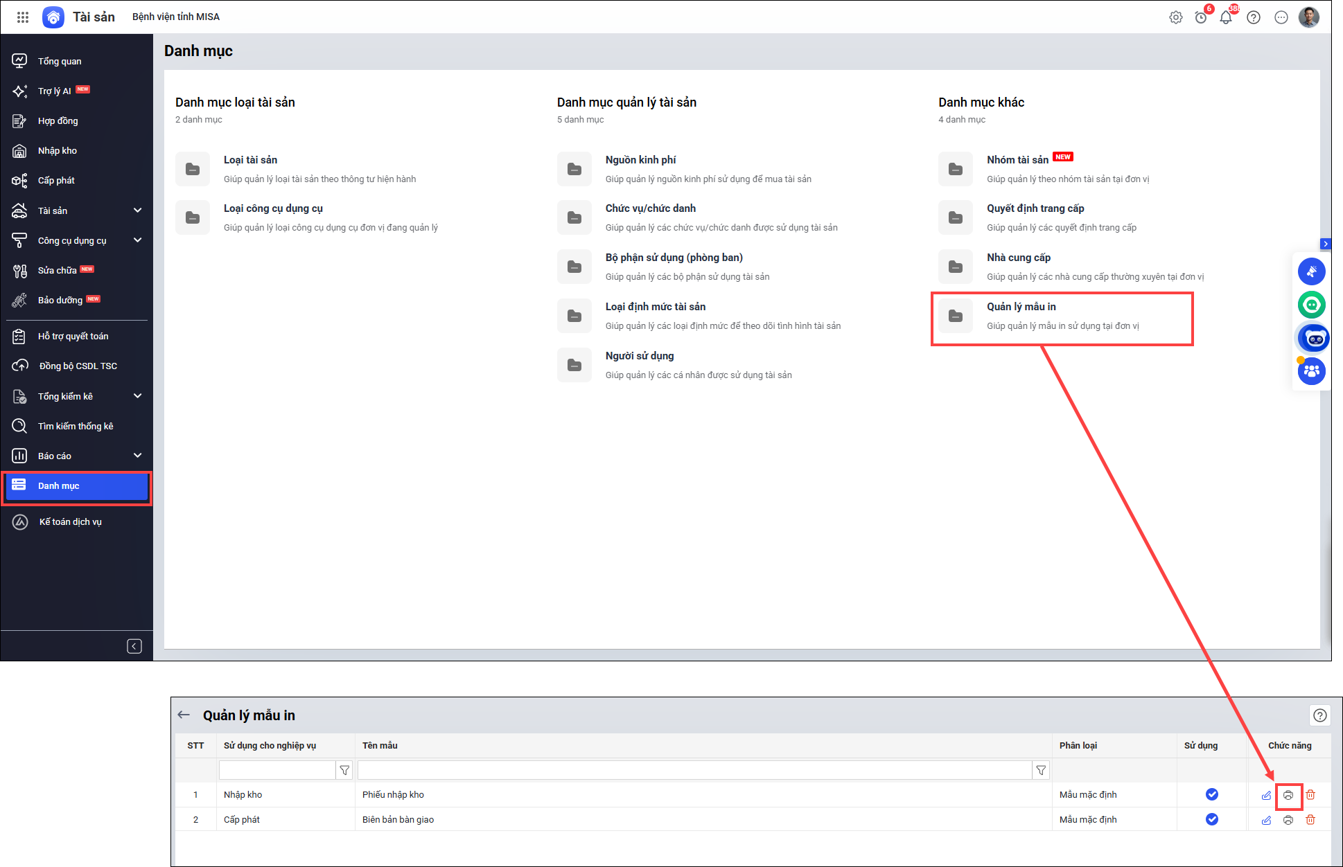 1. Vào Danh mục/Quản lý mẫu in