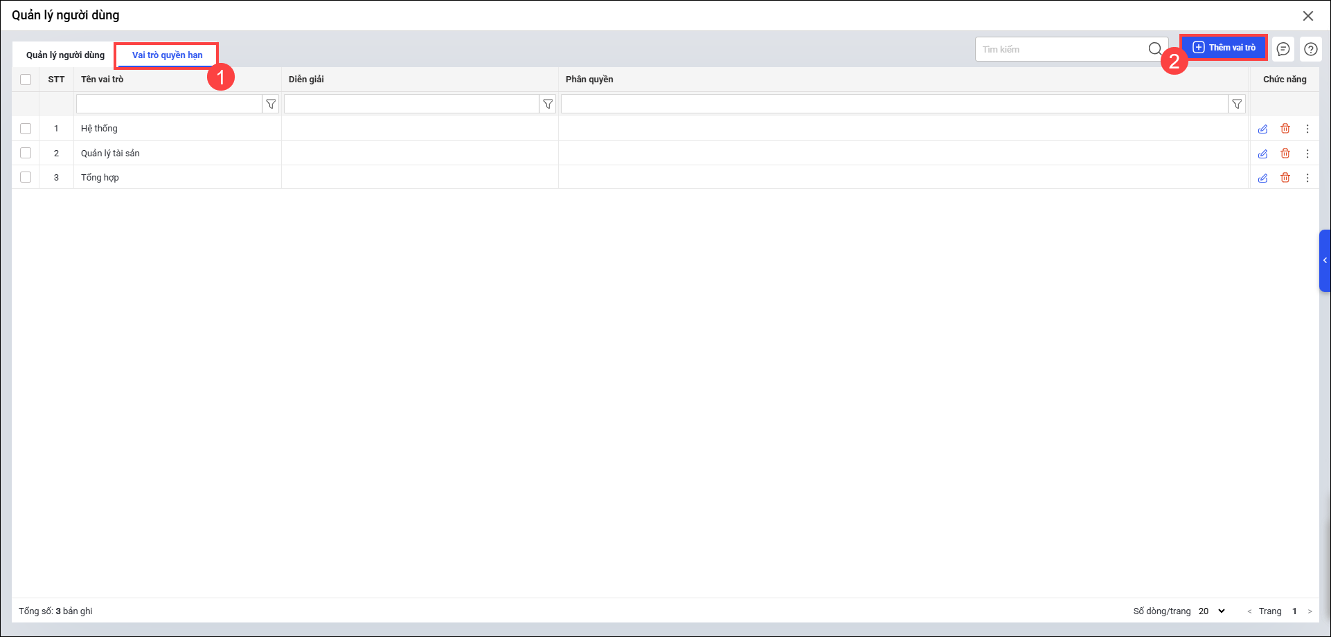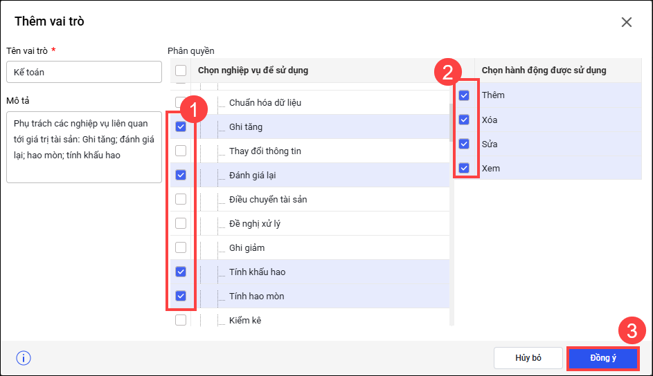2. Hướng dẫn phân quyền vai trò quản lý tài sản theo đúng nhiệm vụ và phạm vi dữ liệu