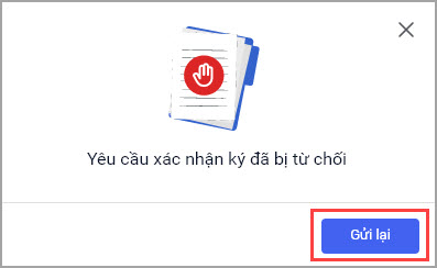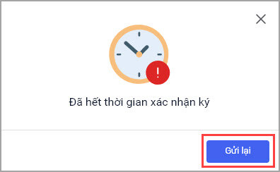 • Hết thời gian yêu cầu xác nhận mà anh/chị chưa xác nhận trên ứng dụng MISA eSign mobile. Chọn Gửi lại để phần mềm gửi lại mã xác thực.