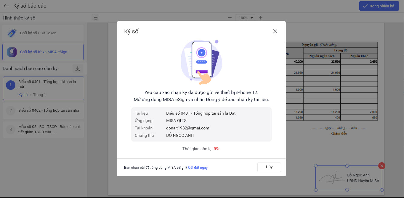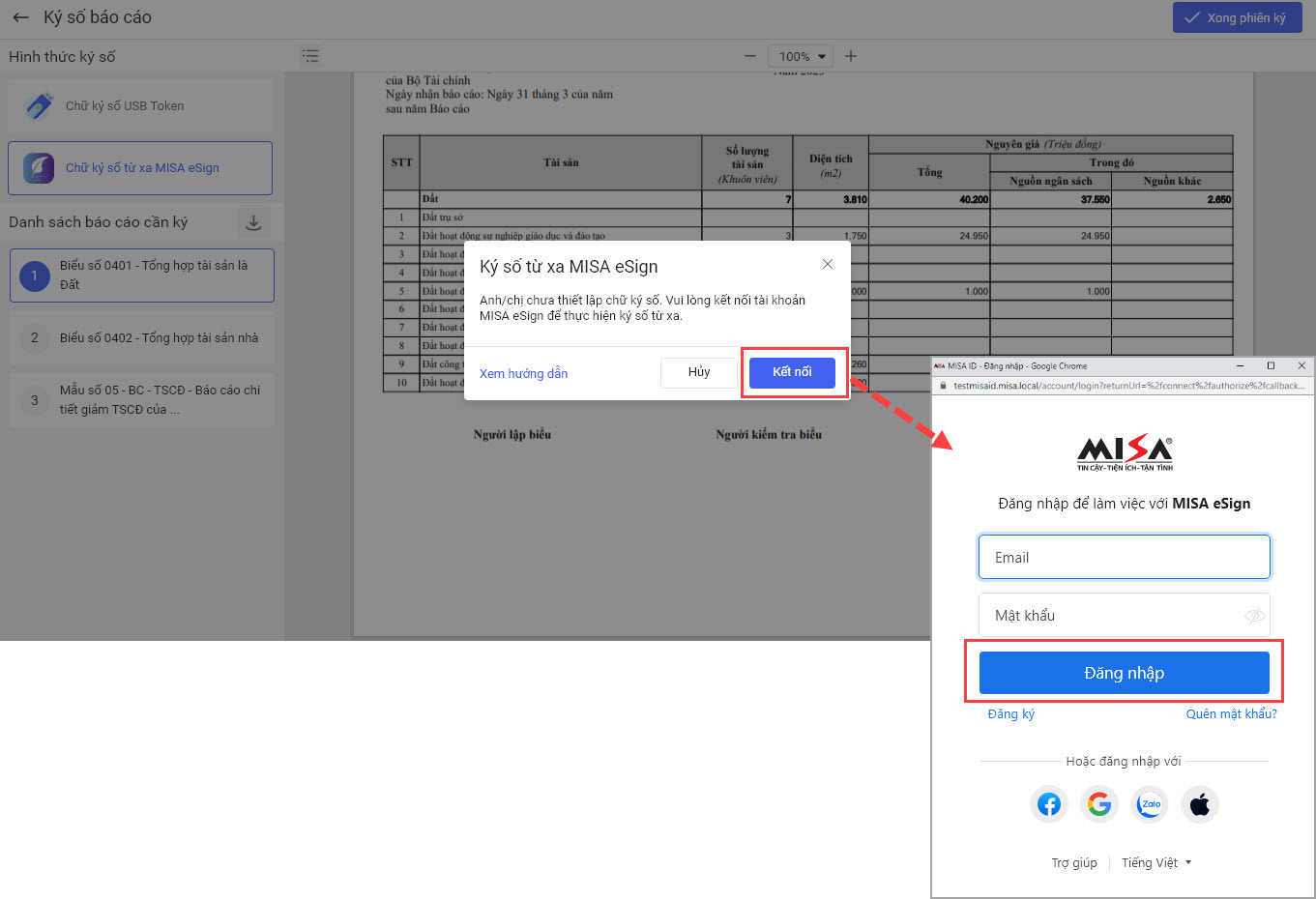 2. Hướng dẫn thực hiện ký số từ xa MISA eSign khi thực hiện lập báo cáo