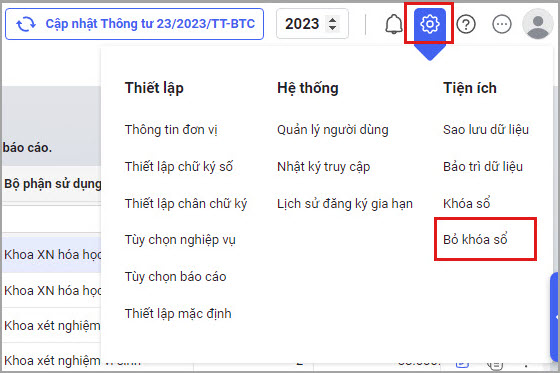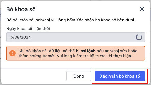 Bước 3. Chọn Xác nhận bỏ khóa sổ.