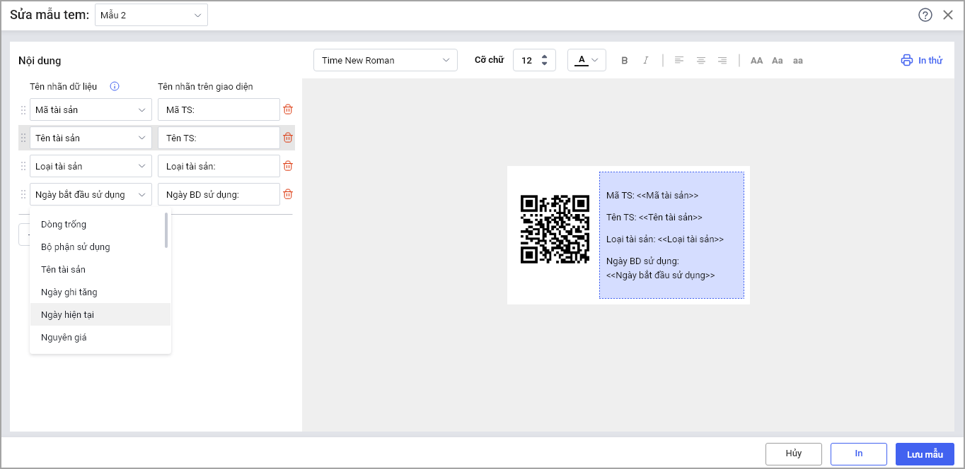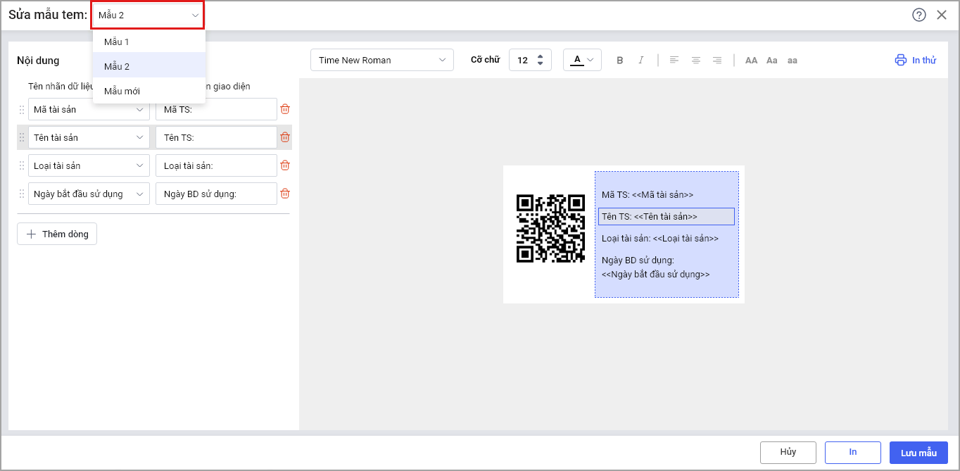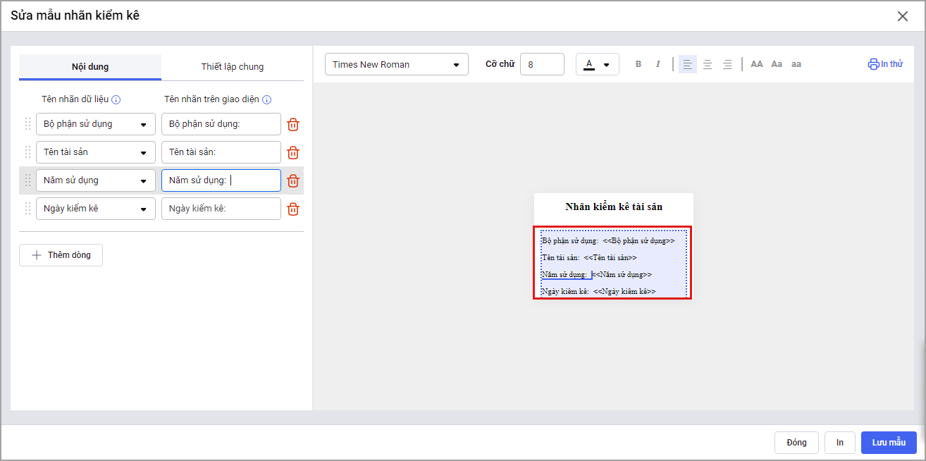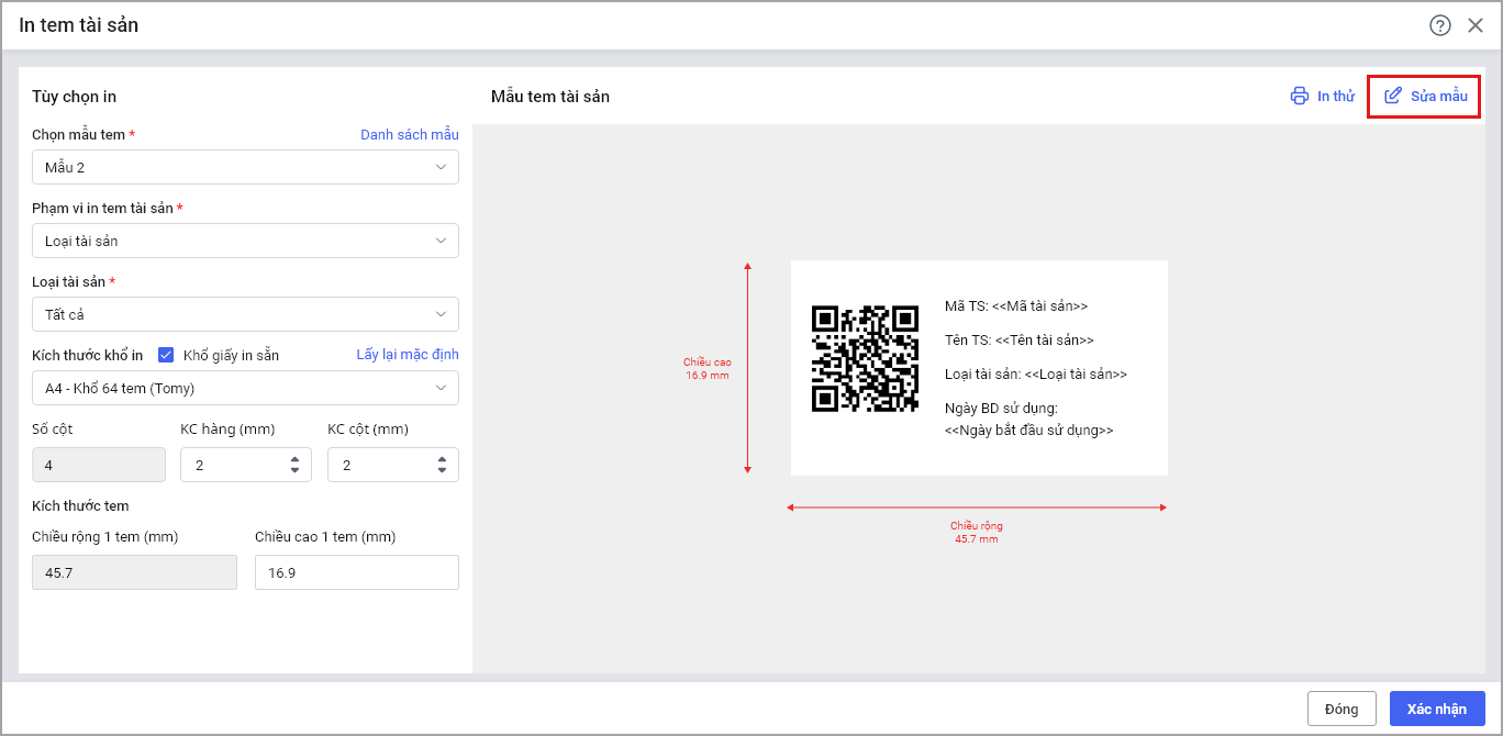 2.2.2. Hướng dẫn sửa mẫu nhãn kiểm kê tài sản thông thường