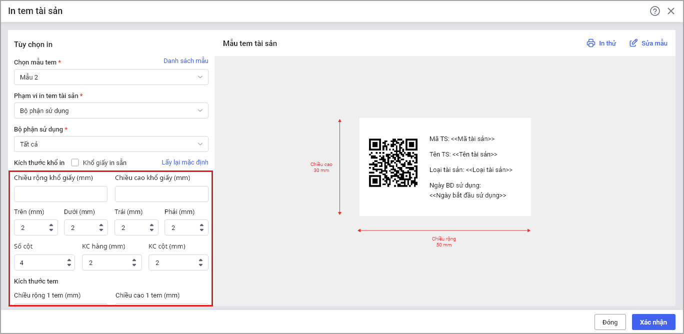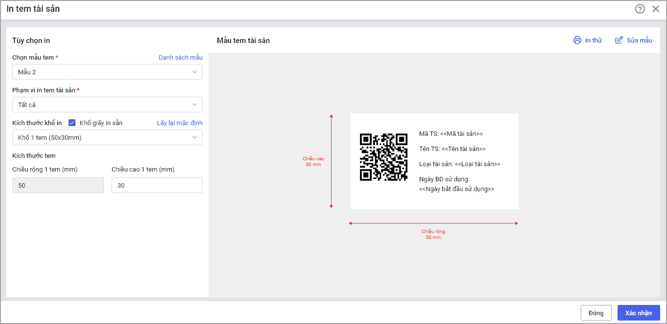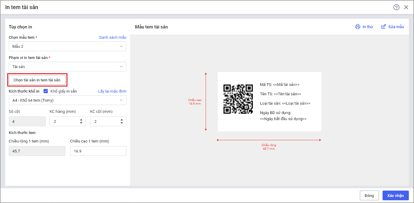 Hướng dẫn in tem tài sản và in nhãn kiểm kê tài sản thông thường