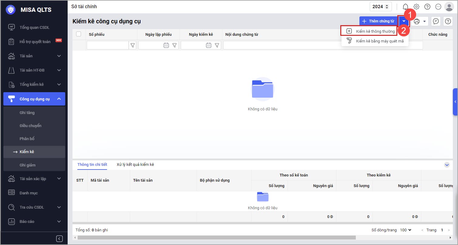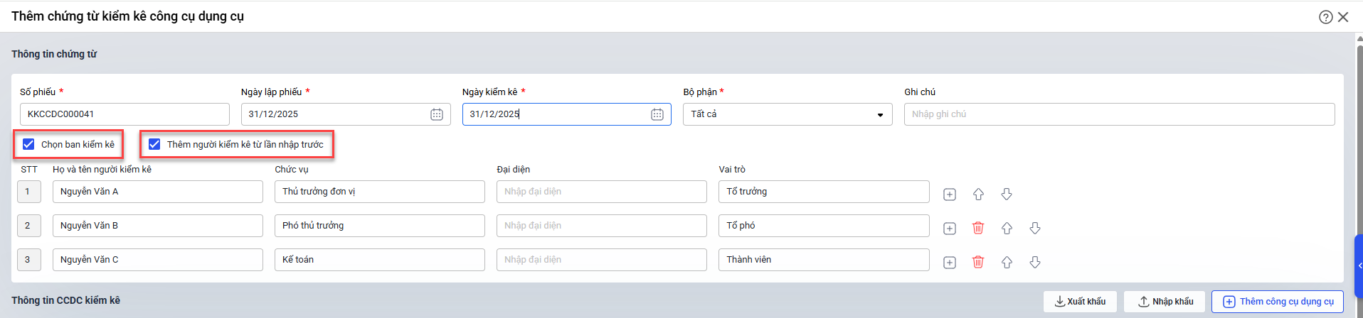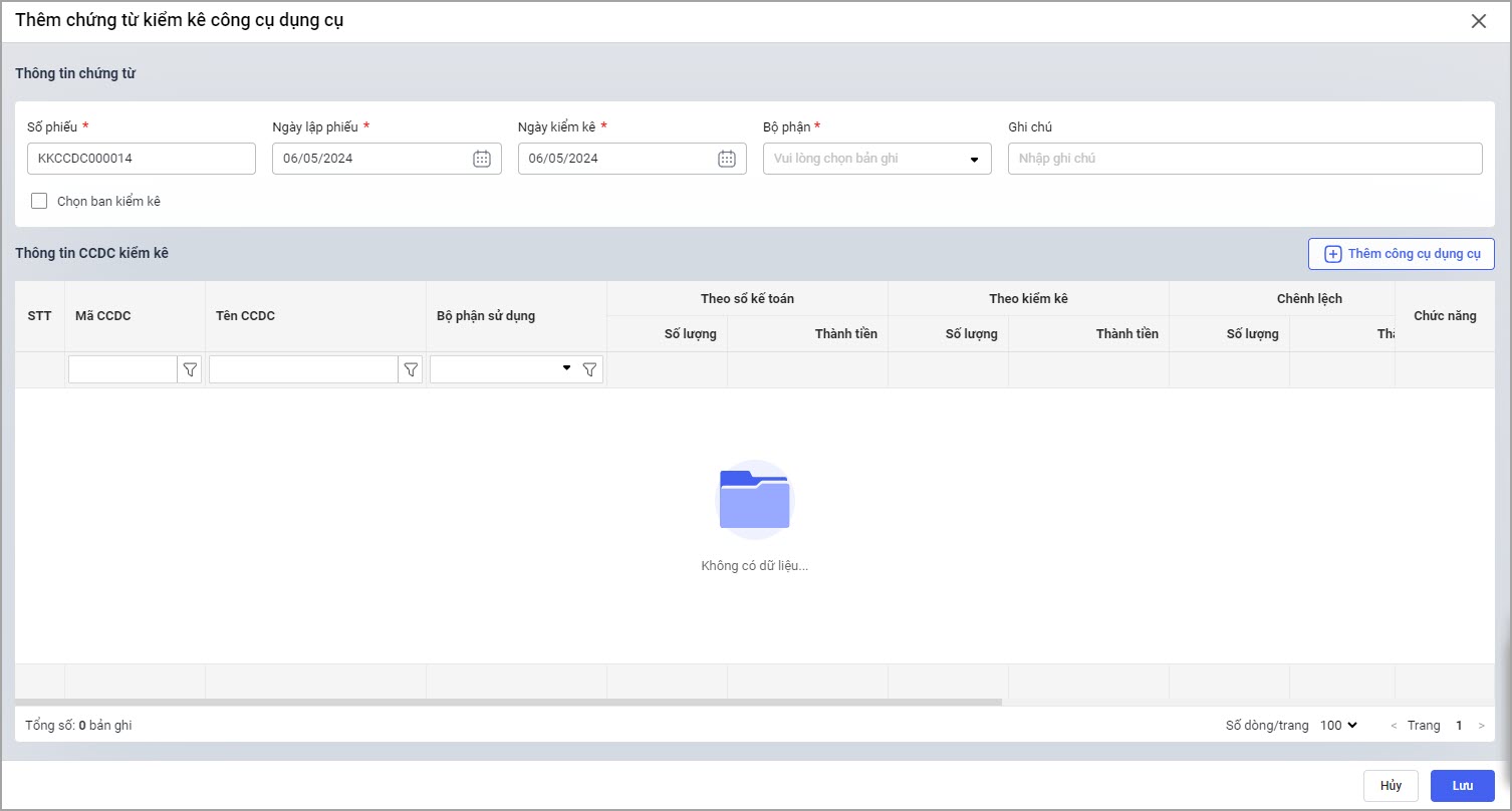 3.2. Không thấy chức năng lập chứng từ Kiểm kê thông thường khi lập chứng từ Kiểm kê CCDC