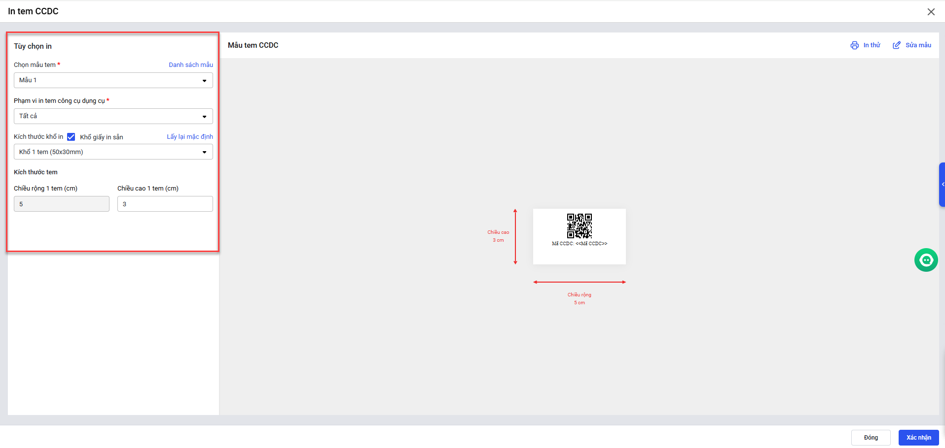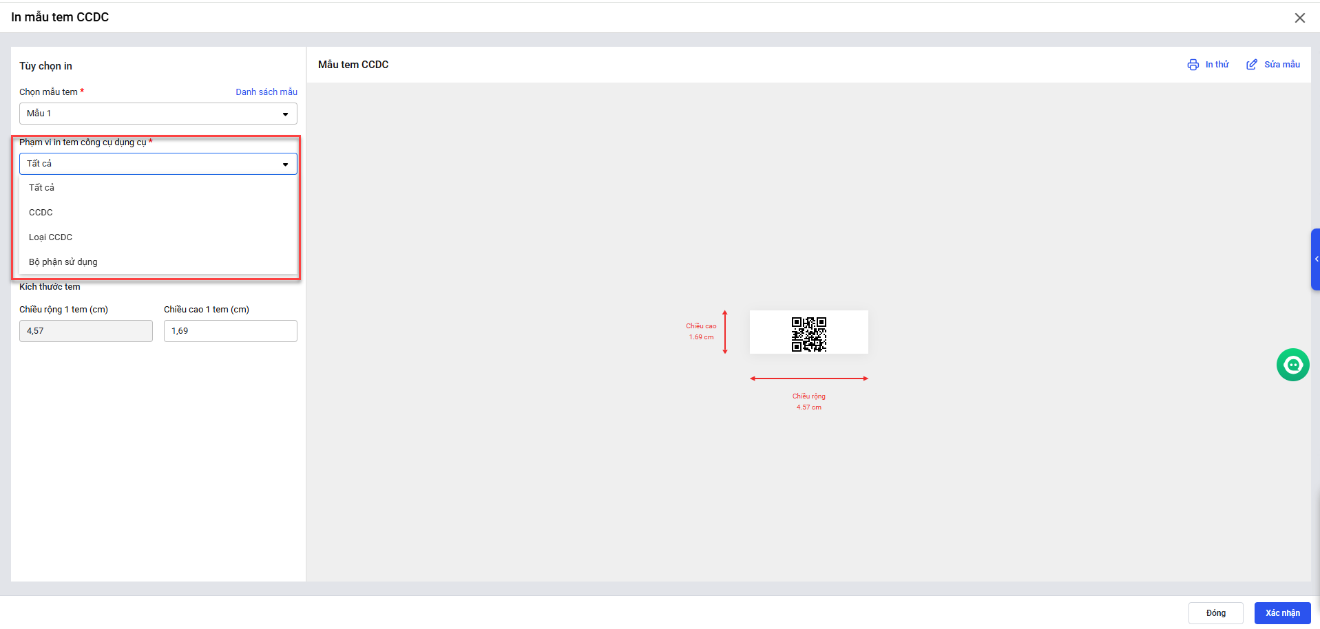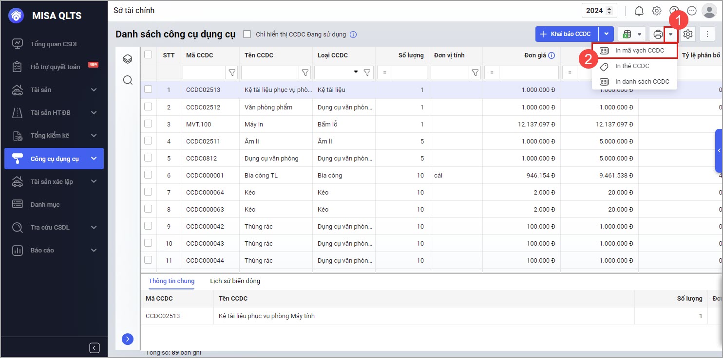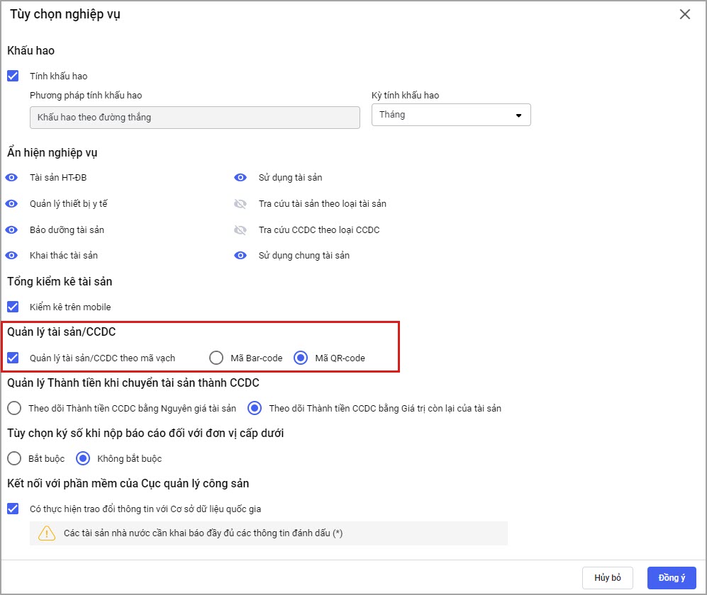 Nguyên nhân: Do đơn vị không Quản lý tài sản/CCDC theo mã vạch.