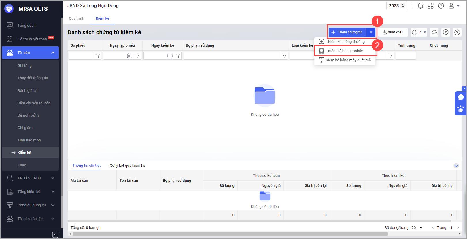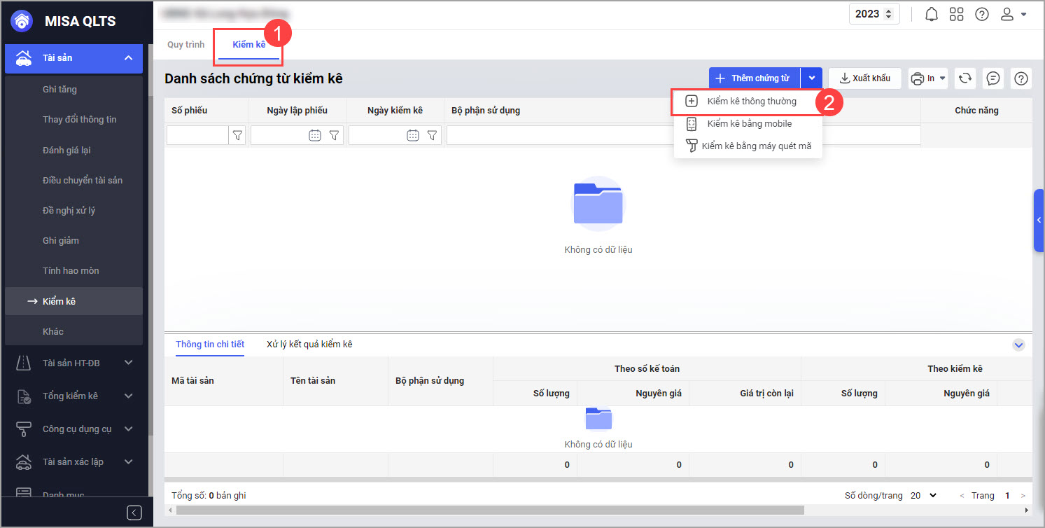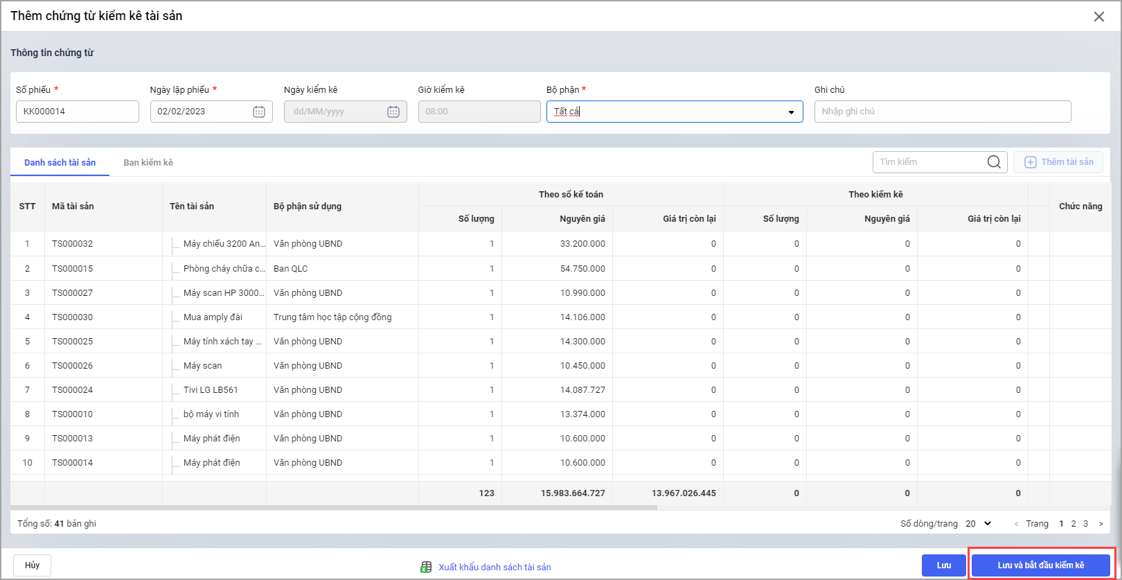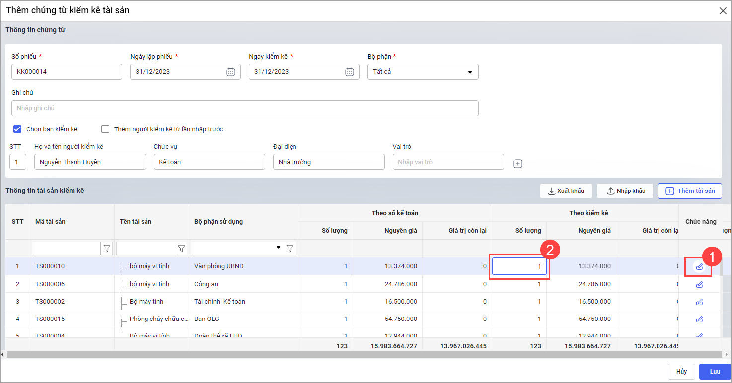 - Bước 2: Lập chứng từ kiểm kê tài sản với đúng ngày kiểm kê.