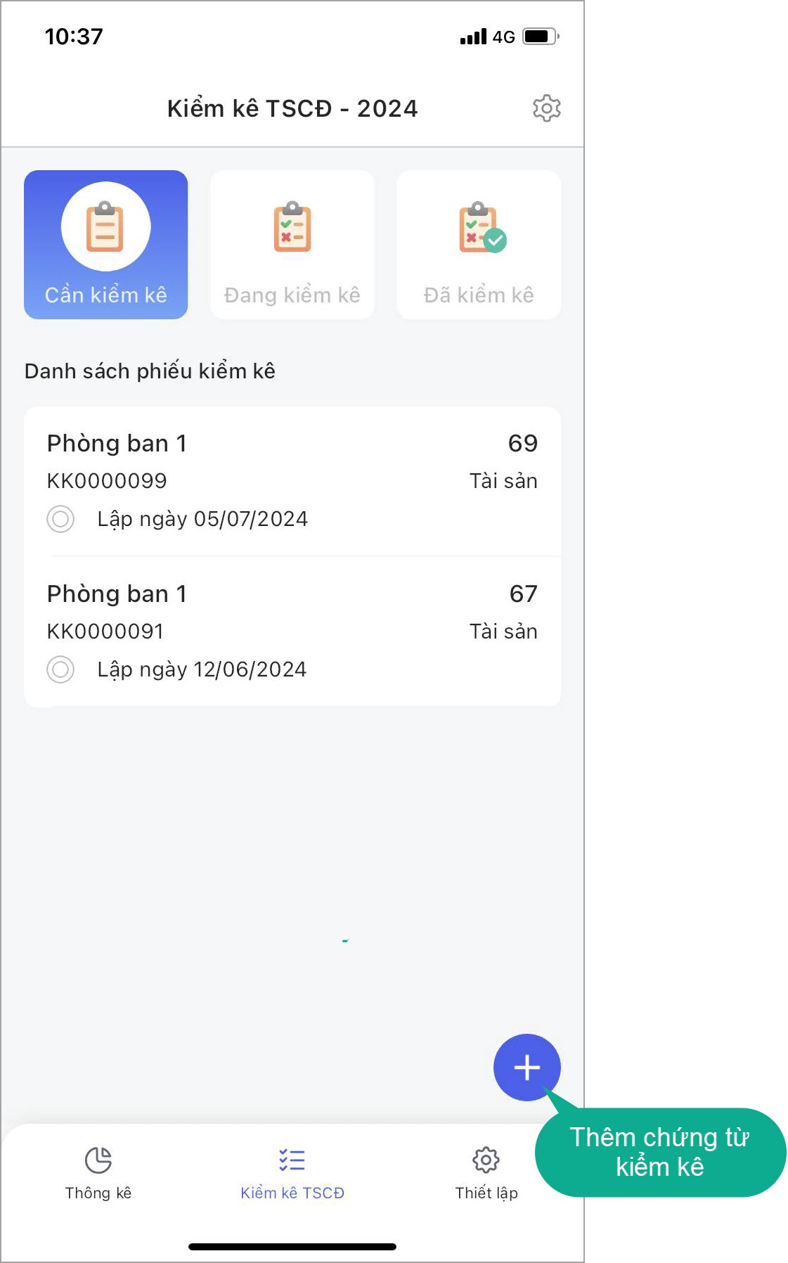 - Nhấn vào biểu tượng dấu cộng để thêm người tham gia kiểm kê.