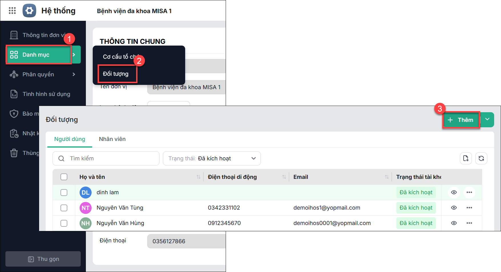 Bước 3: Trong ứng dụng Hệ thống, anh/chị vào Danh mục\Đối tượng\ nhấn Thêm.