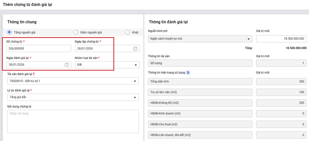 Ví dụ: TSCĐ đã có chứng từ phát sinh vào 27/01 thì không thể làm lại chứng từ Đánh giá lại vào 01/01 được.