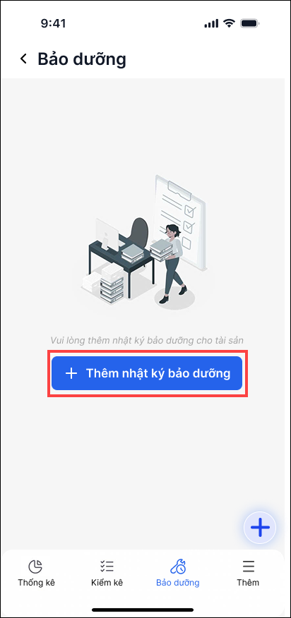 1. Vào ứng dụng Tài sản chọn Bảo dưỡng