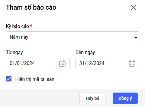 Kể từ phiên bản R12: phần mềm IHOS Tài sản đã bổ sung Mẫu số 05-BC-TSHTĐB trong mục Báo cáo tài sản hạ tầng đường bộ. Đơn vị có thể khai báo tham số kỳ báo cáo, chọn thời gian và in báo cáo tổng hợp tình hình tăng, giảm tài sản hạ tầng đường bộ theo đúng quy định.