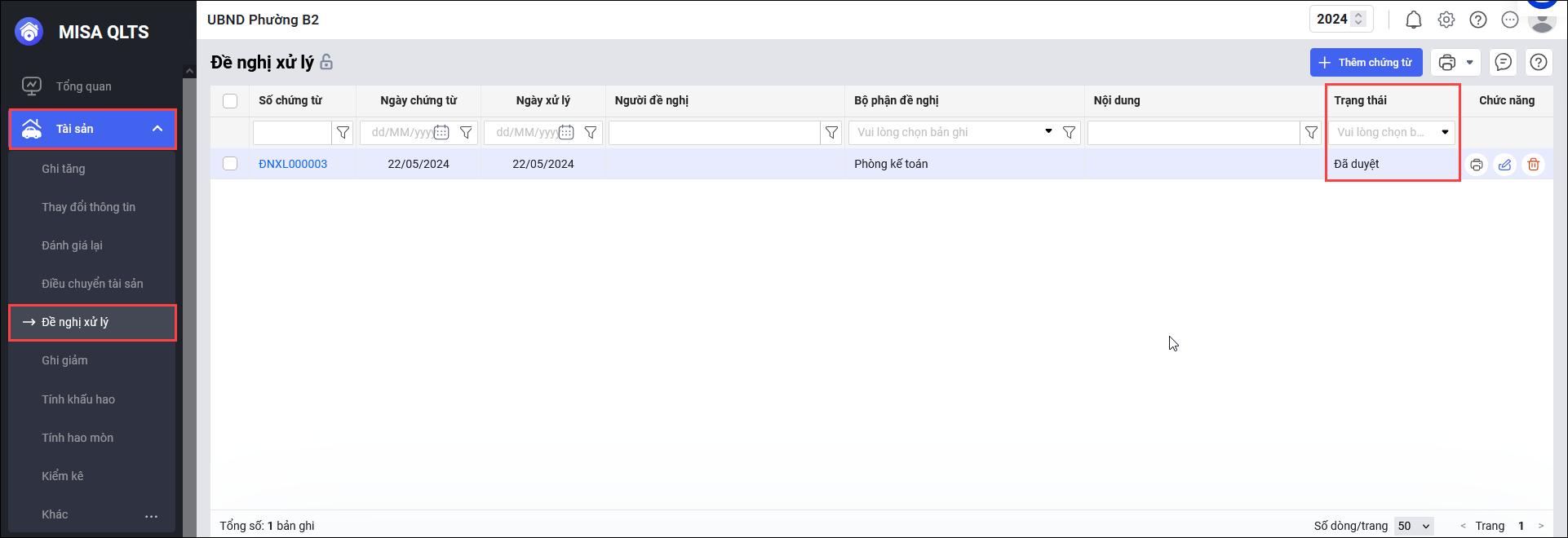 - Trạng thái đề nghị là “Đã duyệt”.
