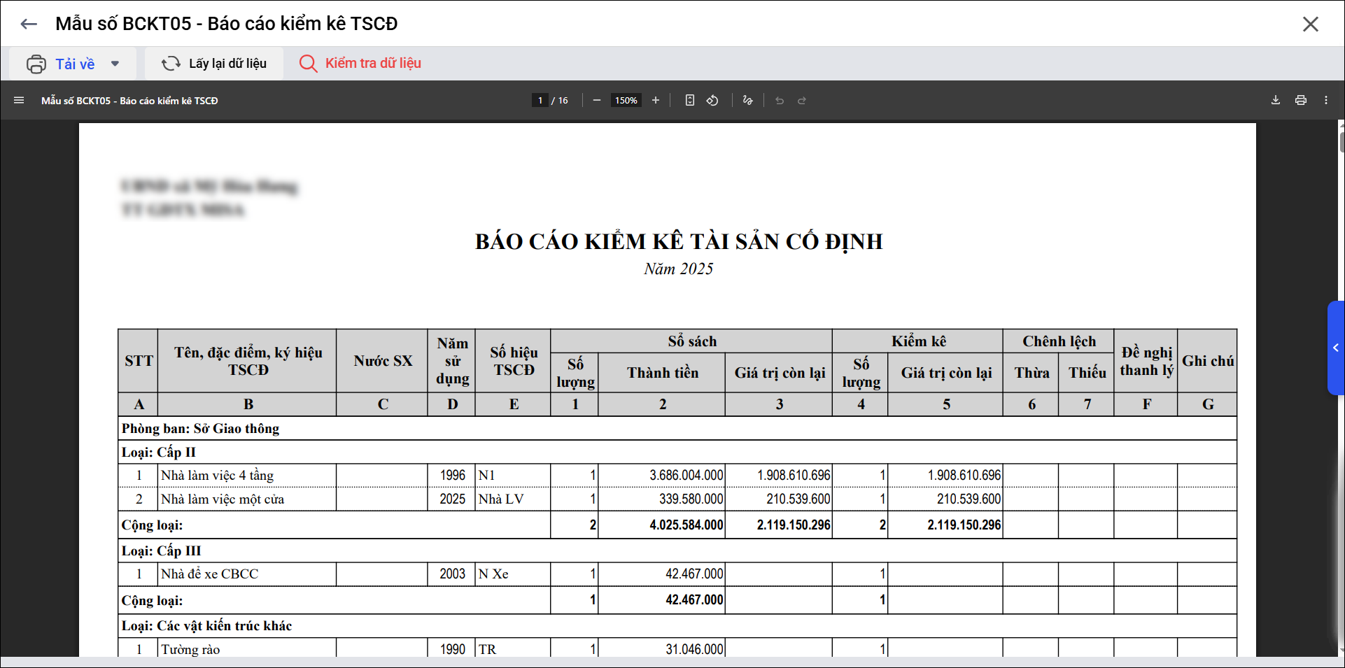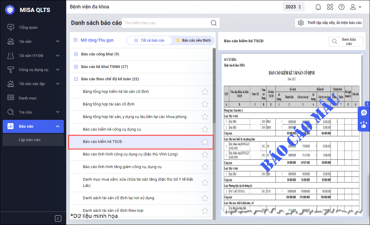 - Anh/chị phải lập chứng từ kiểm kê TSCĐ trước khi in báo cáo.