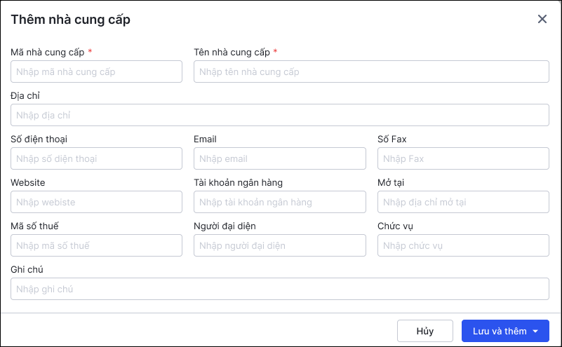 2.1. Thêm mới Nhà cung cấp