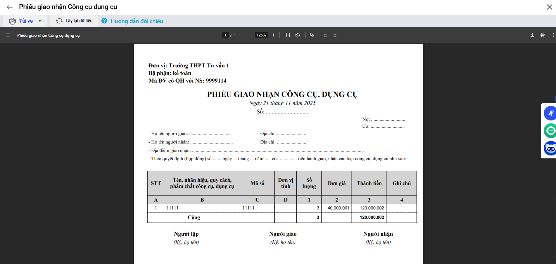 Bài viết này hướng dẫn anh/chị cách in phiếu giao nhận công cụ dụng cụ hỗ trợ công tác quản lý và bàn giao CCDC theo đúng quy định.