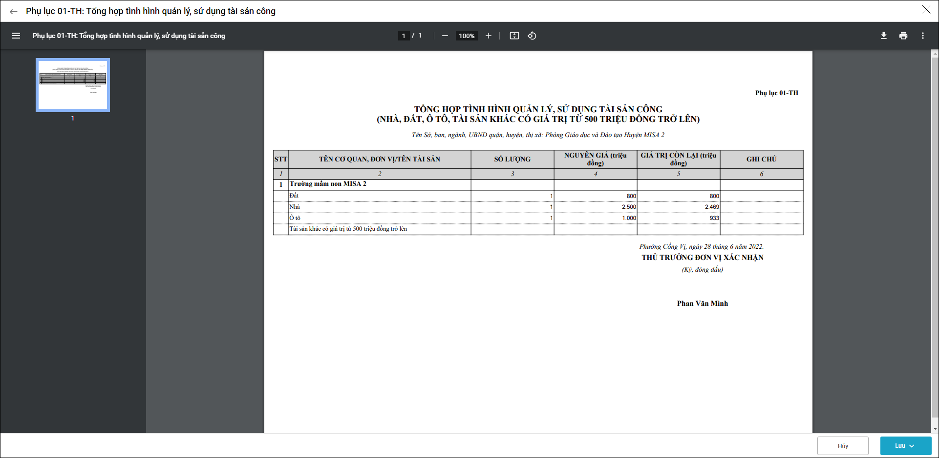 Bài viết này giúp anh/chị nắm được cập nhật cho phép in Phụ lục 01-TH: Tổng hợp tình hình quản lý, sử dụng tài sản công trên phần mềm IHos Tài sản, phục vụ công tác báo cáo cho ban lãnh đạo và quản lý tài sản công theo quy định.
