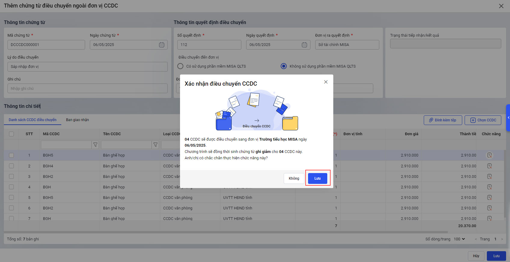 Bài viết này giúp anh/chị thực hiện điều chuyển CCDC ra ngoài đơn vị nhanh chóng, đúng quy trình và đảm bảo số liệu quản lý chính xác.