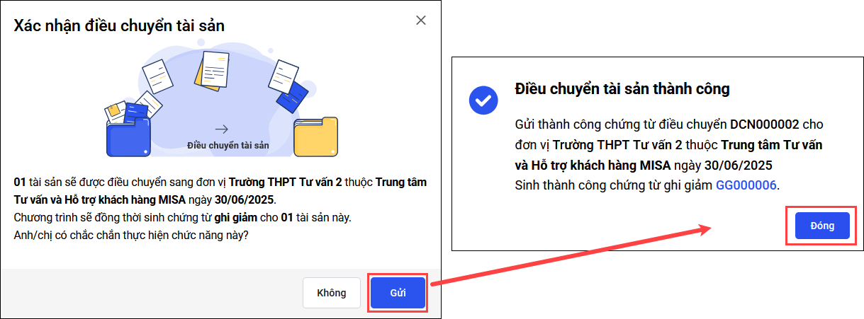 Bài viết này hướng dẫn anh chị lập và gửi chứng từ điều chuyển tài sản cố định cho một đơn vị khác cùng sử dụng phần mềm iHos Tài sản/QLTS, tự động hóa quy trình bàn giao, giúp hai bên theo dõi trạng thái tiếp nhận (chấp nhận hoặc từ chối) một cách minh bạch.