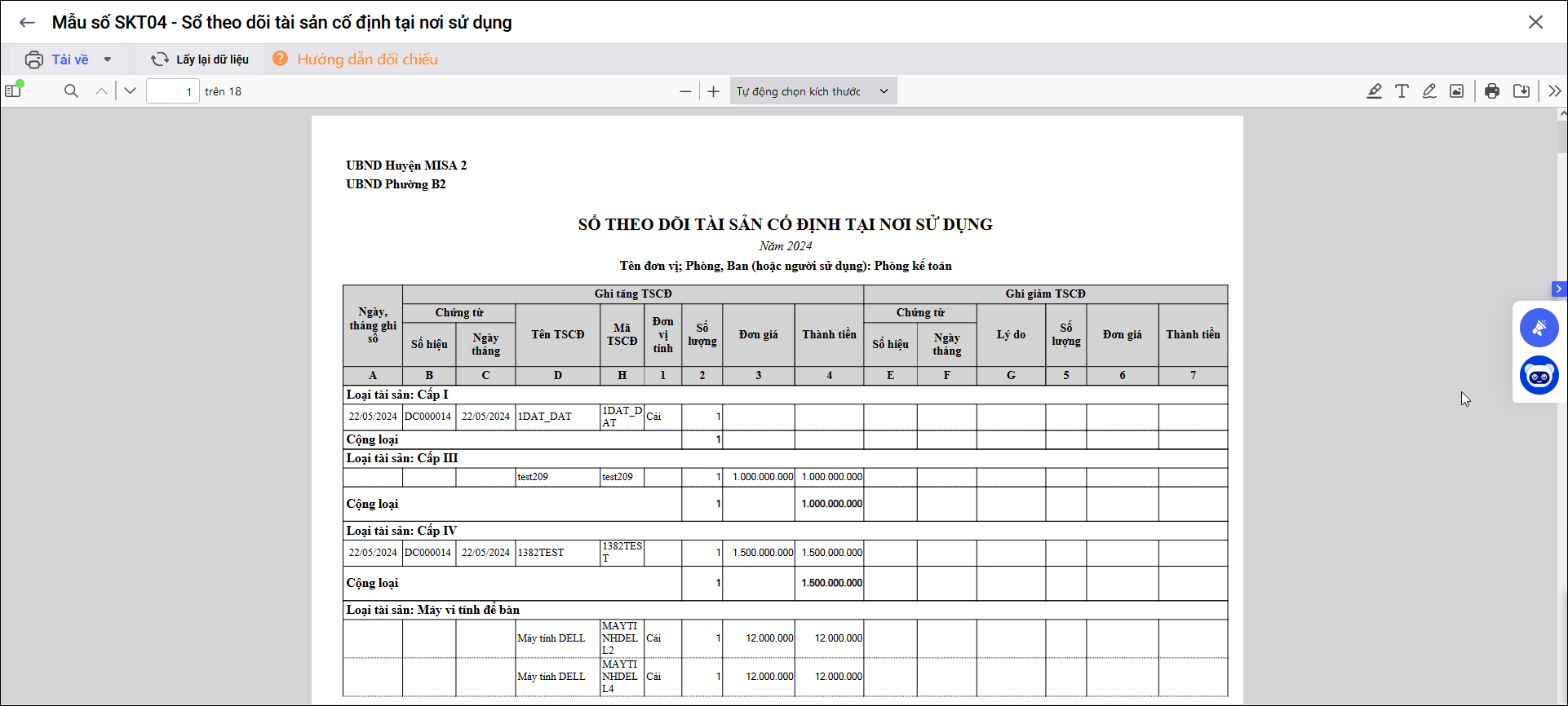 Bài viết này giúp anh/chị in được Mẫu số SKT04 – Sổ theo dõi tài sản cố định tại nơi sử dụng.