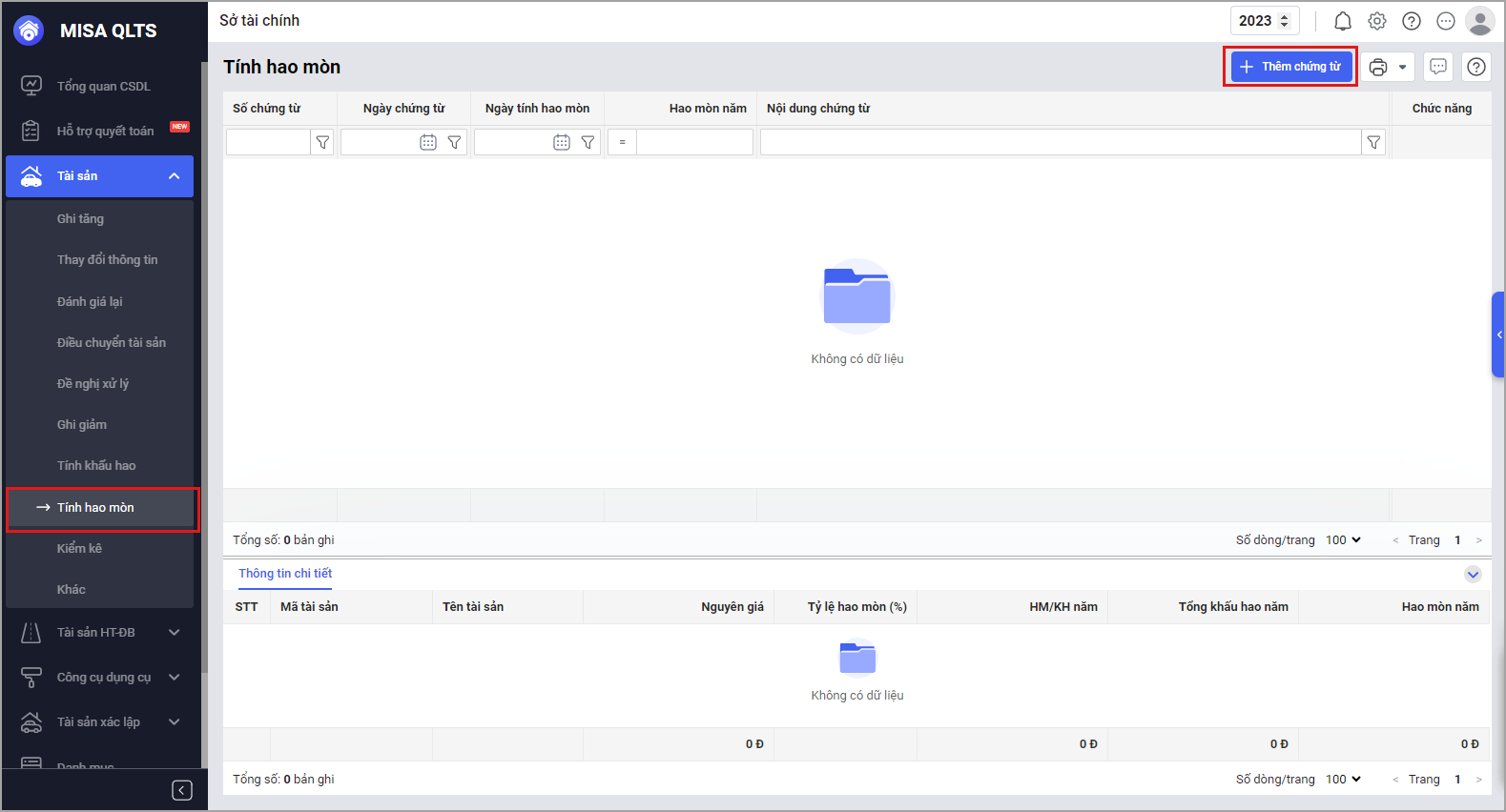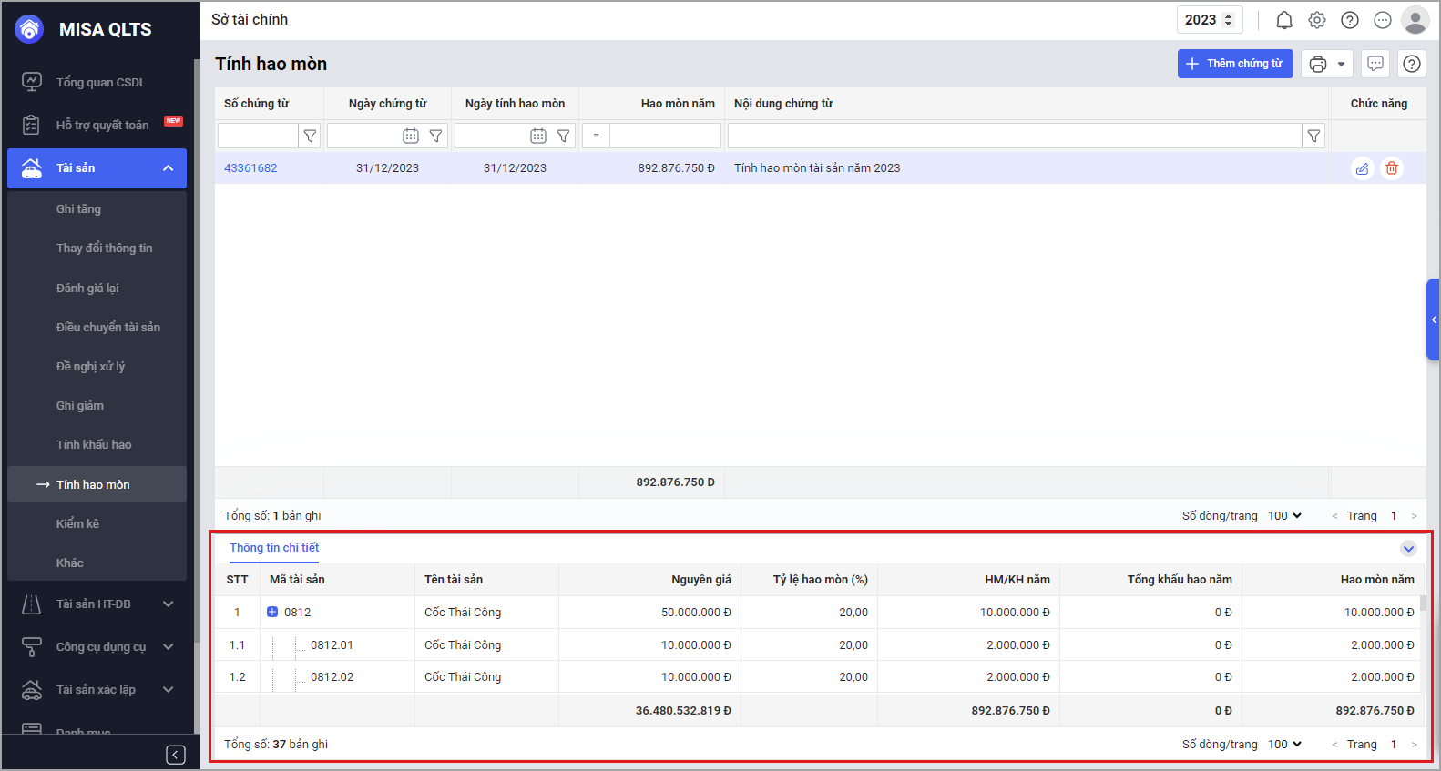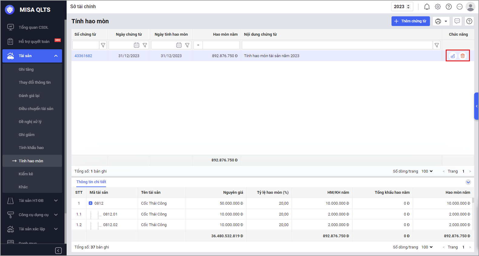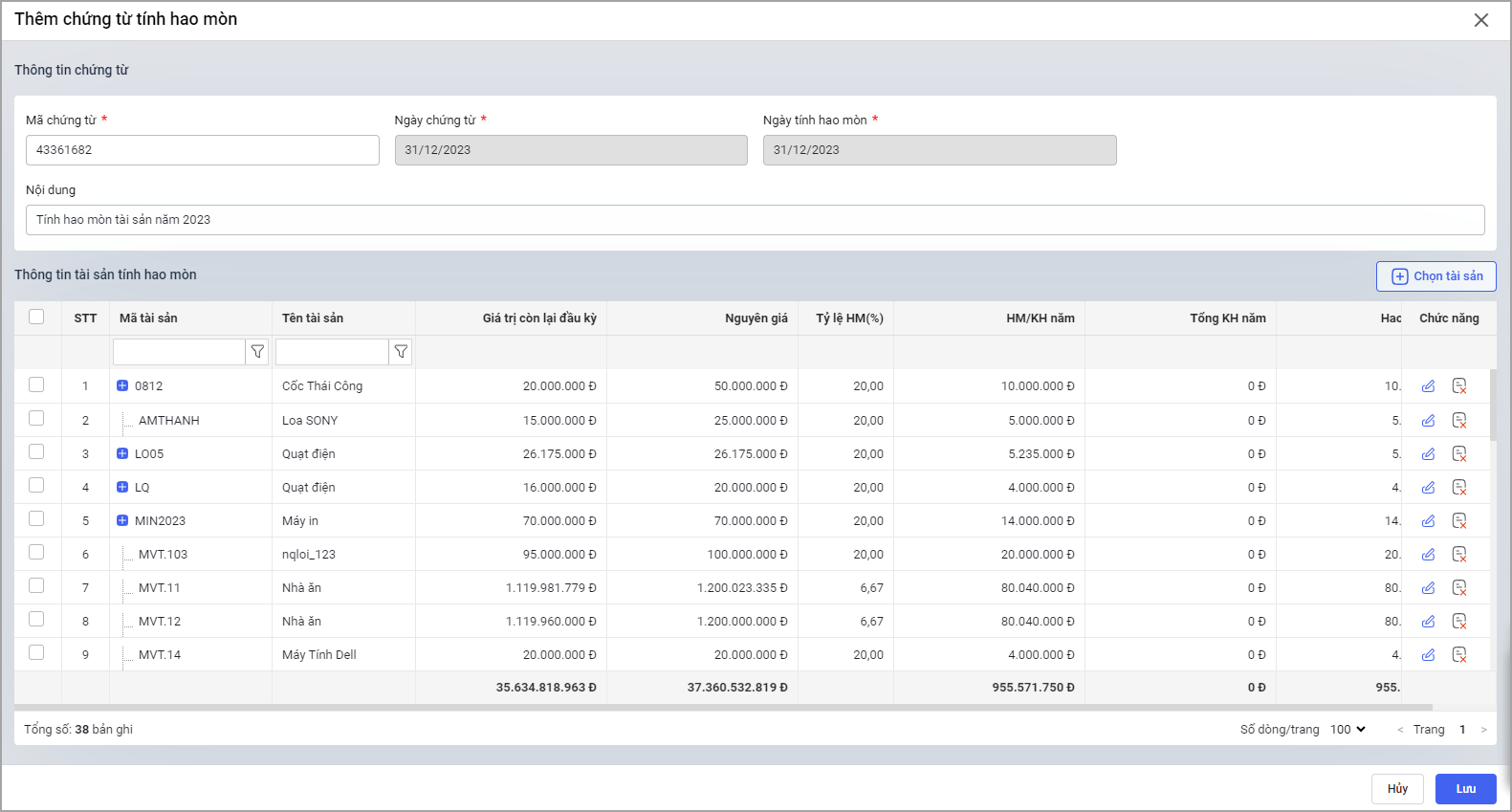 • Hao mòn năm: hiển thị số hao mòn của tài sản trong năm.