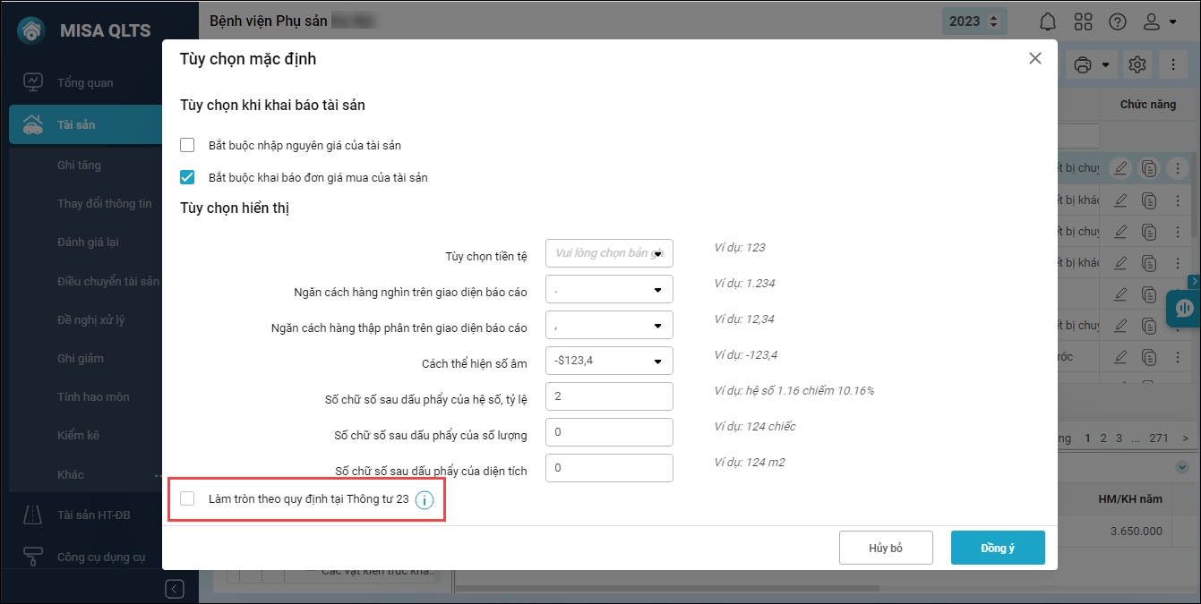 5. Cán bộ QLTS mong muốn thay đổi cách thức làm tròn số liệu về giá trị tài sản theo quy định Thông tư 23/2023/TT-BTC để đảm bảo ghi nhận đúng trên các sổ sách báo cáo