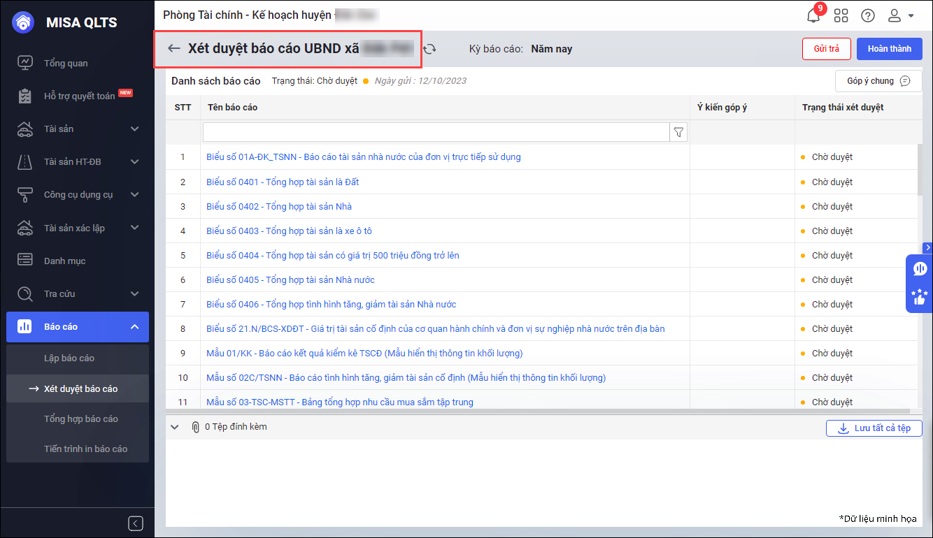 • Cán bộ Quản lý tài sản có thể nắm bắt mã báo cáo để dễ dàng tìm kiếm và phân biệt với các báo cáo có tên tương tự.