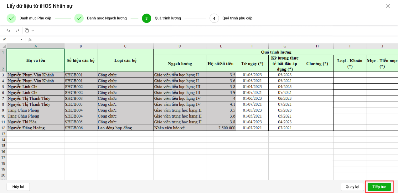 - Kiểm tra lại danh sách cán bộ kèm quá trình lương tương ứng từ iHOS Nhân sự.