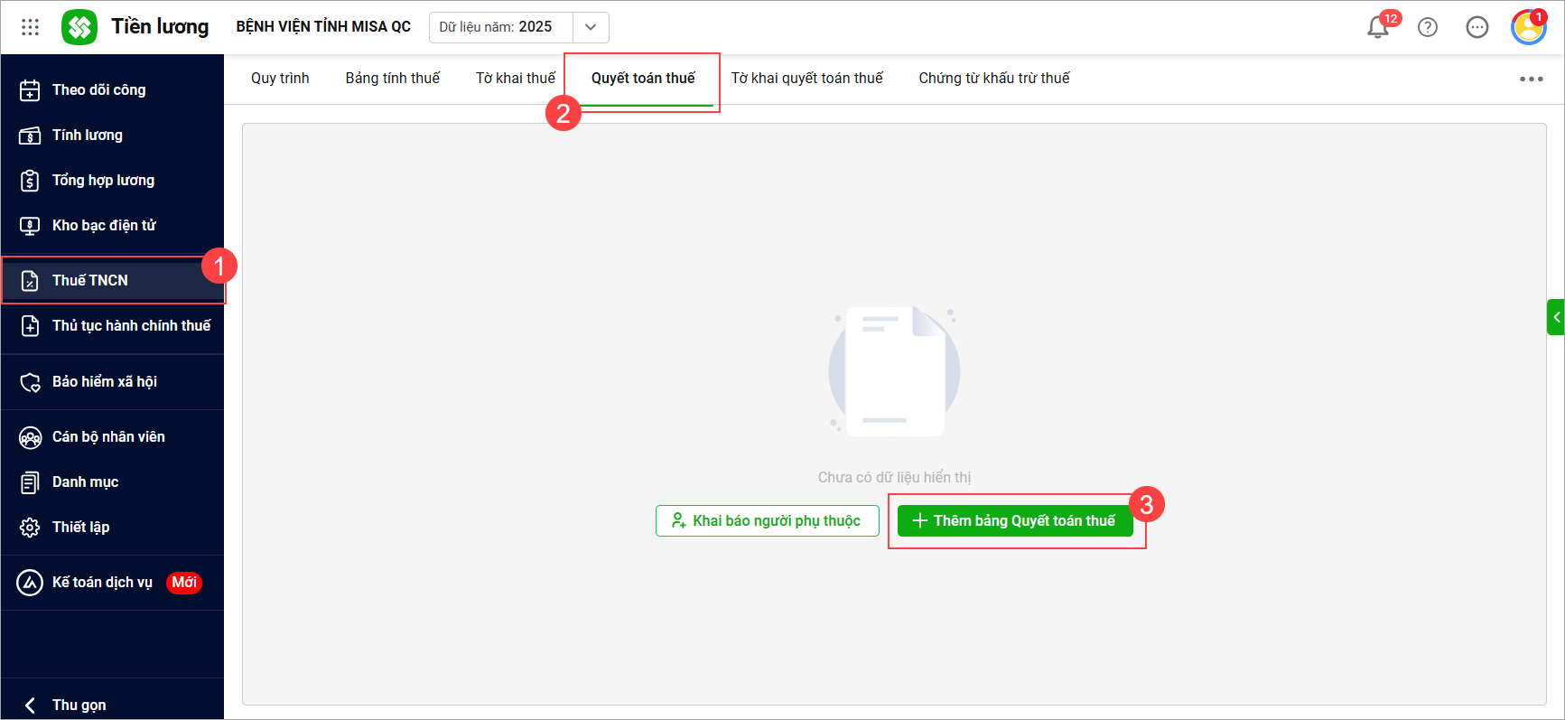 3. Bảng quyết toán thuế hiển thị các trường thông tin bao gồm: