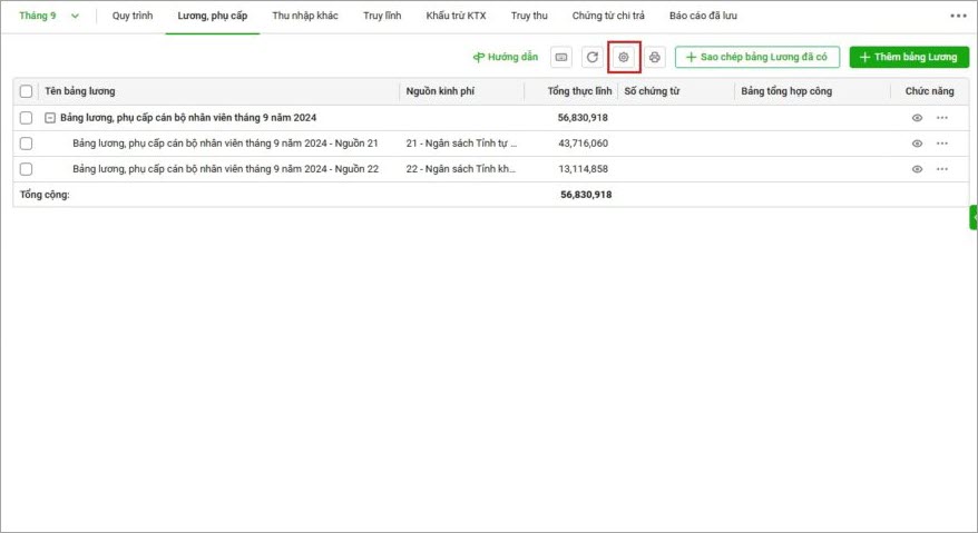 - Phân bổ nguồn (nếu bảng lương, phụ cấp đã lập chưa được phân bổ)