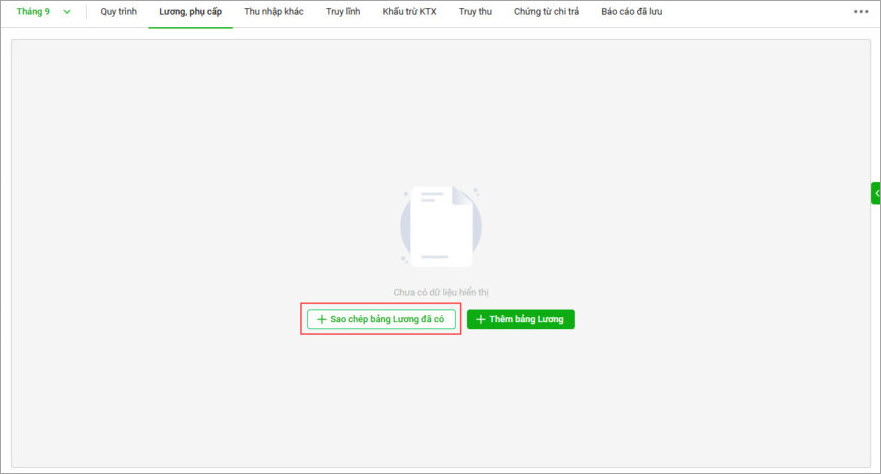 Chọn Sao chép Bảng lương đã có
