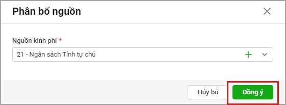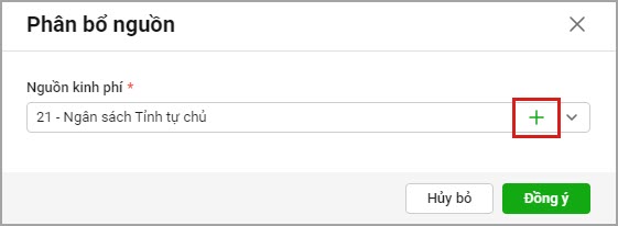 - Trường hợp không tìm thấy nguồn kinh phí muốn sử dụng anh/chị chọn biểu tượng dấu cộng để thêm nhanh