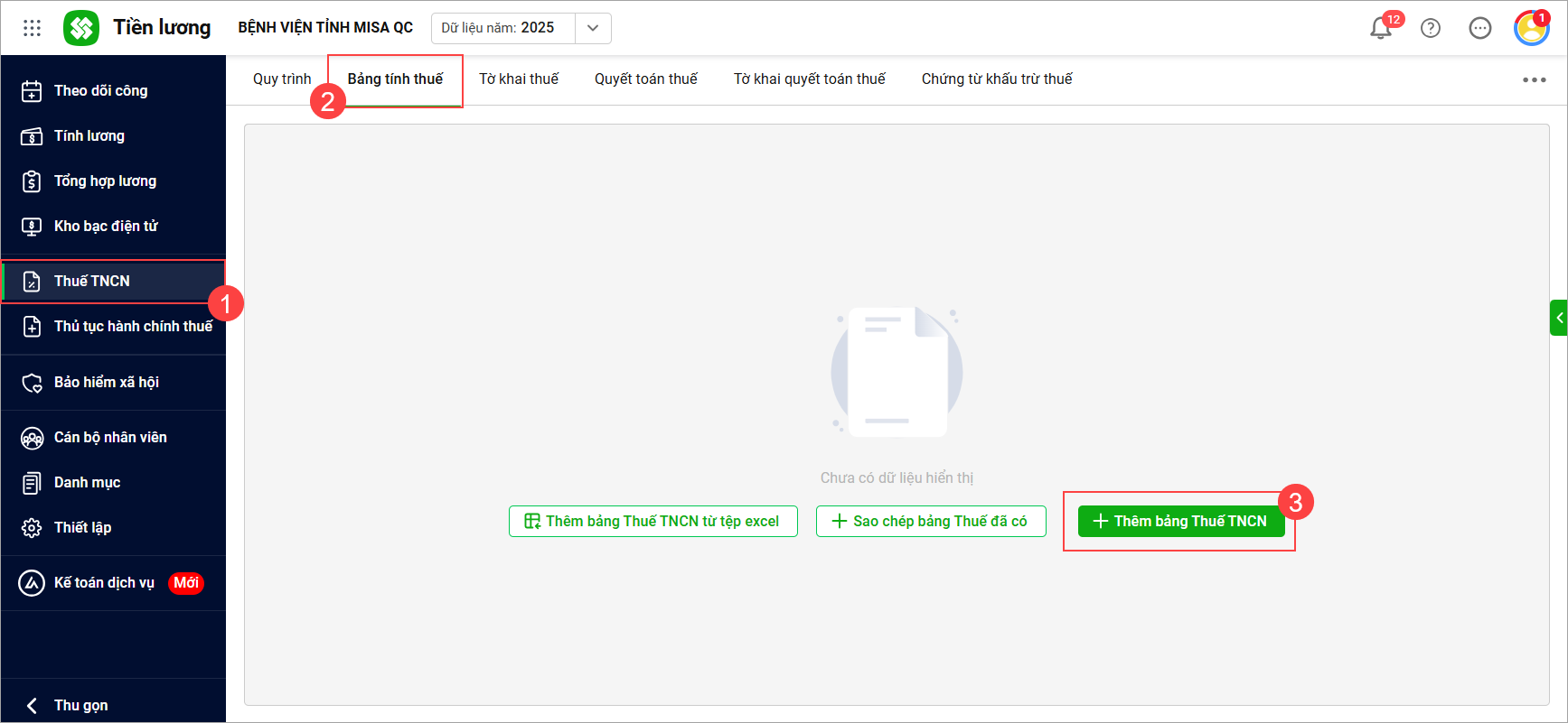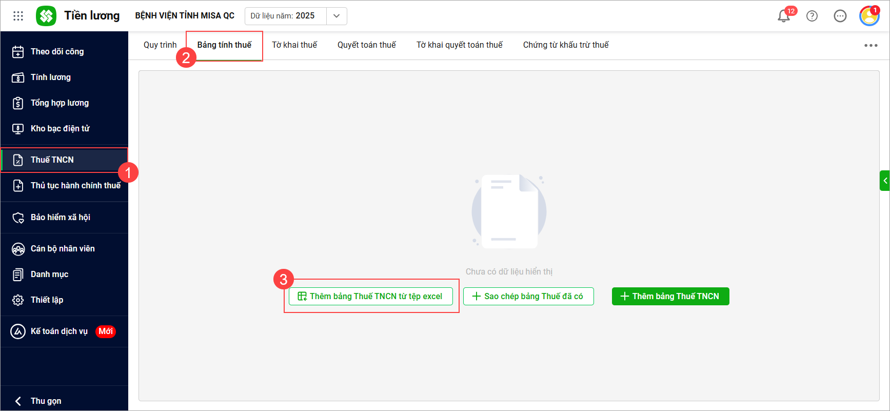 Trường hợp 1: Thêm bảng Thuế TNCN từ tệp excel