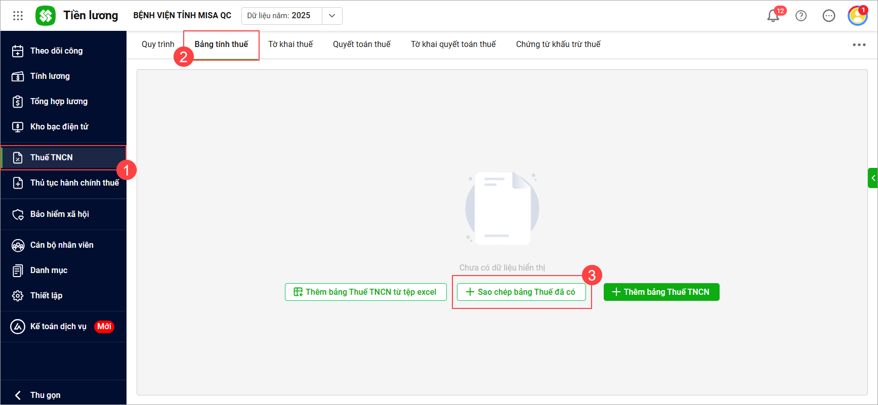 - Nếu anh/chị đã thực hiện lập các bảng tính trên phần mềm MISA SalaGov, anh/chị chọn bảng tính làm căn cứ tính thuế